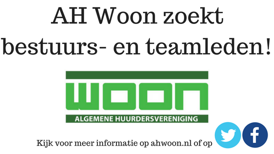 De Algemene Huurdersvereniging Woon behartigt de belangen van huurders van woningcorporatie Woonborg. Om dit zo goed mogelijk te kunnen doen, breidt AH Woon zijn bestuur uit. Voor verschillende bestuursfuncties staan daarom vacatures open. Ook zoekt WOON teamleden, die samen met het bestuur de verschillende werkzaamheden willen uitvoeren. Wilt u uw steentje bijdragen aan een nog beter huurdersklimaat en bent u huurder van Woonborg? Dan is AH Woon op zoek naar u!